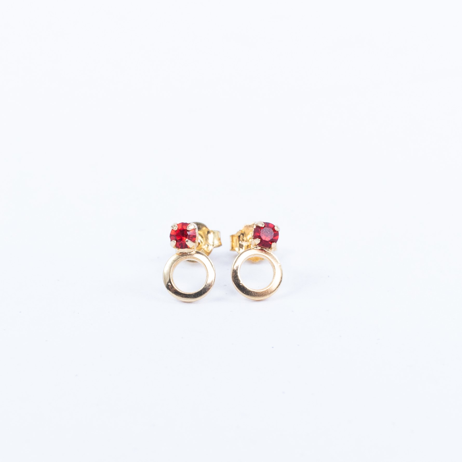 Brinco infantil de círculo com zircônia vermelha com tarraxa comum: um toque de elegância que dura!