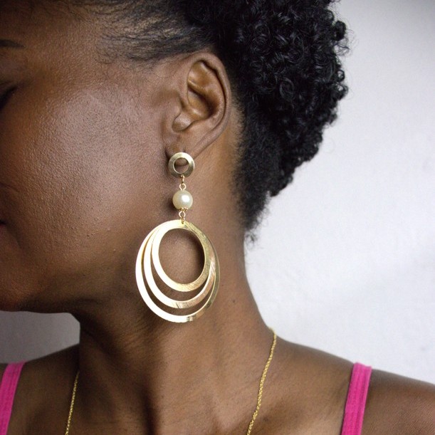 Brinco trio de círculos com um pérola: um toque de elegância que dura