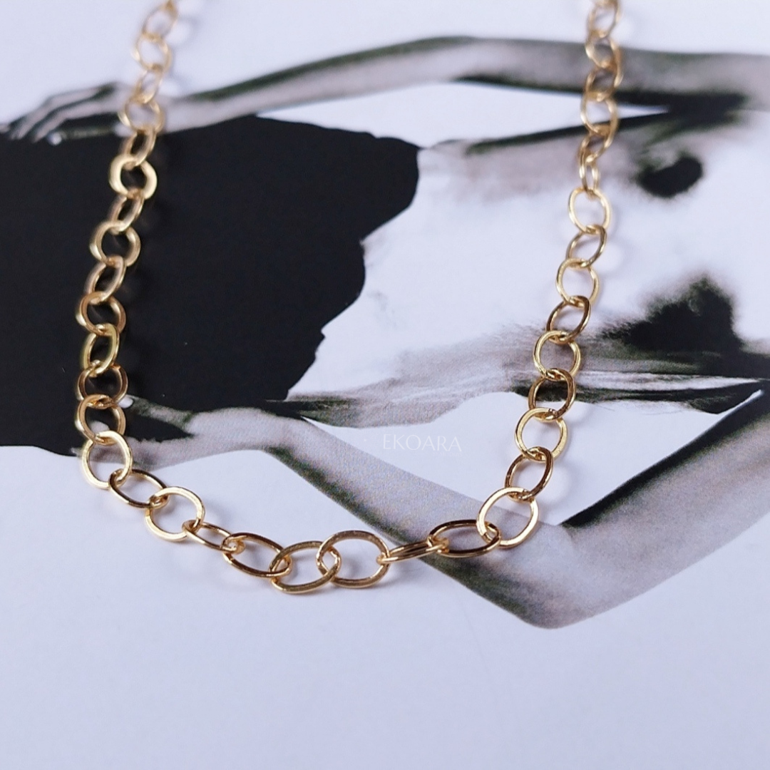 Sinta-se poderosa e sofisticada com a corrente de elos redondos, uma semijoia única da Ekoara que combina beleza, qualidade e exclusividade. Ideal para mulheres que desejam expressar sua essência com delicadeza e estilo, esta semijoia é perfeita para qualquer ocasião, desde um visual casual até eventos mais especiais.