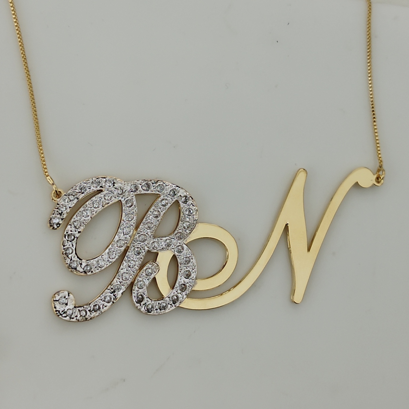 Adicione o colar personalizado letra dupla - uma letra toda com aplique de ródio prata e pedras de zircônias ao seu carrinho agora e transforme seu visual com uma semijoia que vai realçar sua confiança e beleza única. Compre a sua porque você merece se sentir única todos os dias.