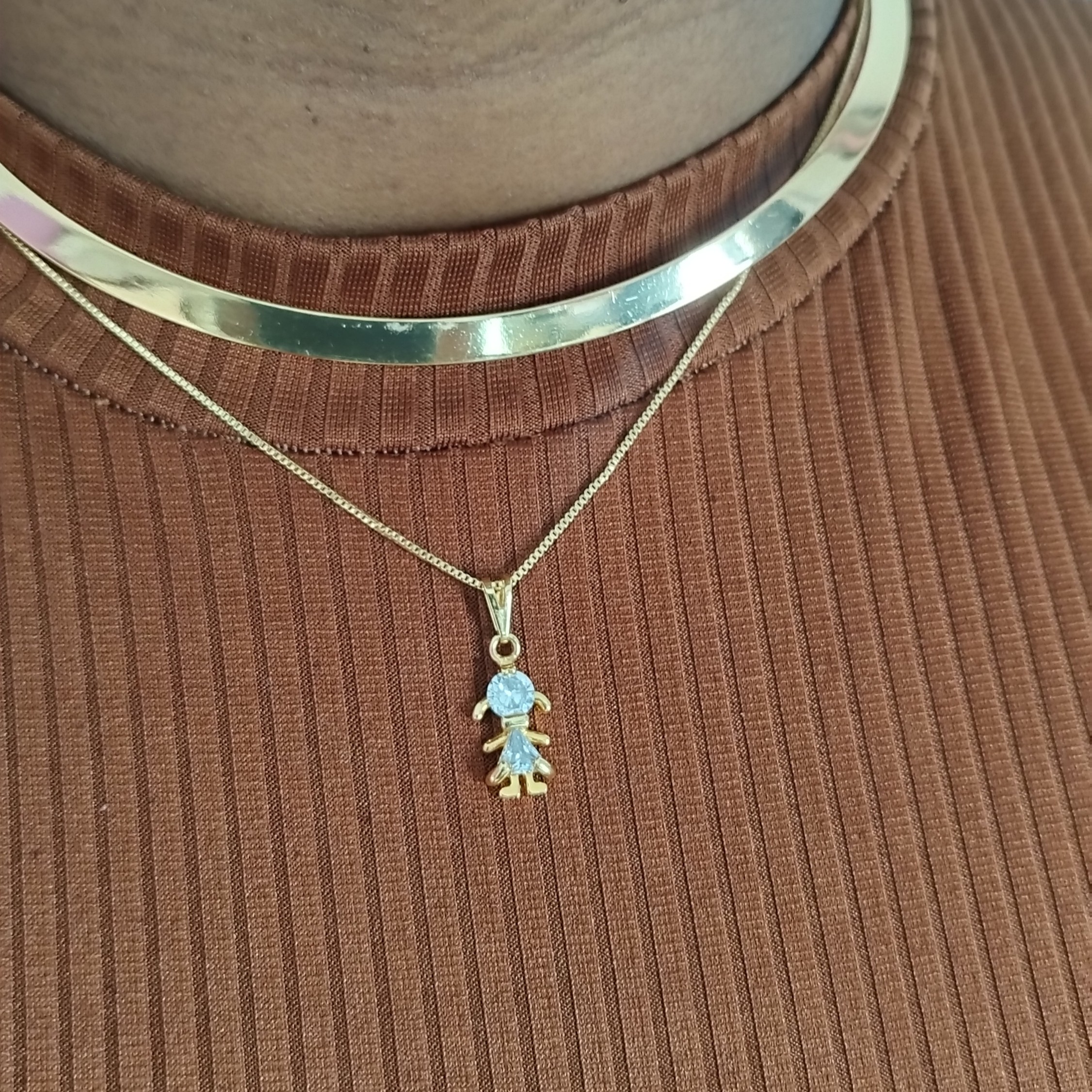 Sinta-se poderosa e sofisticada com o cordão com pingente de filha corpinho de zircônia cristal, uma semijoia da Ekoara que combina beleza e qualidade. Ideal para mulheres que desejam expressar sua essência com delicadeza e estilo, esta semijoia é perfeita para qualquer ocasião, desde um visual casual até eventos mais especiais.