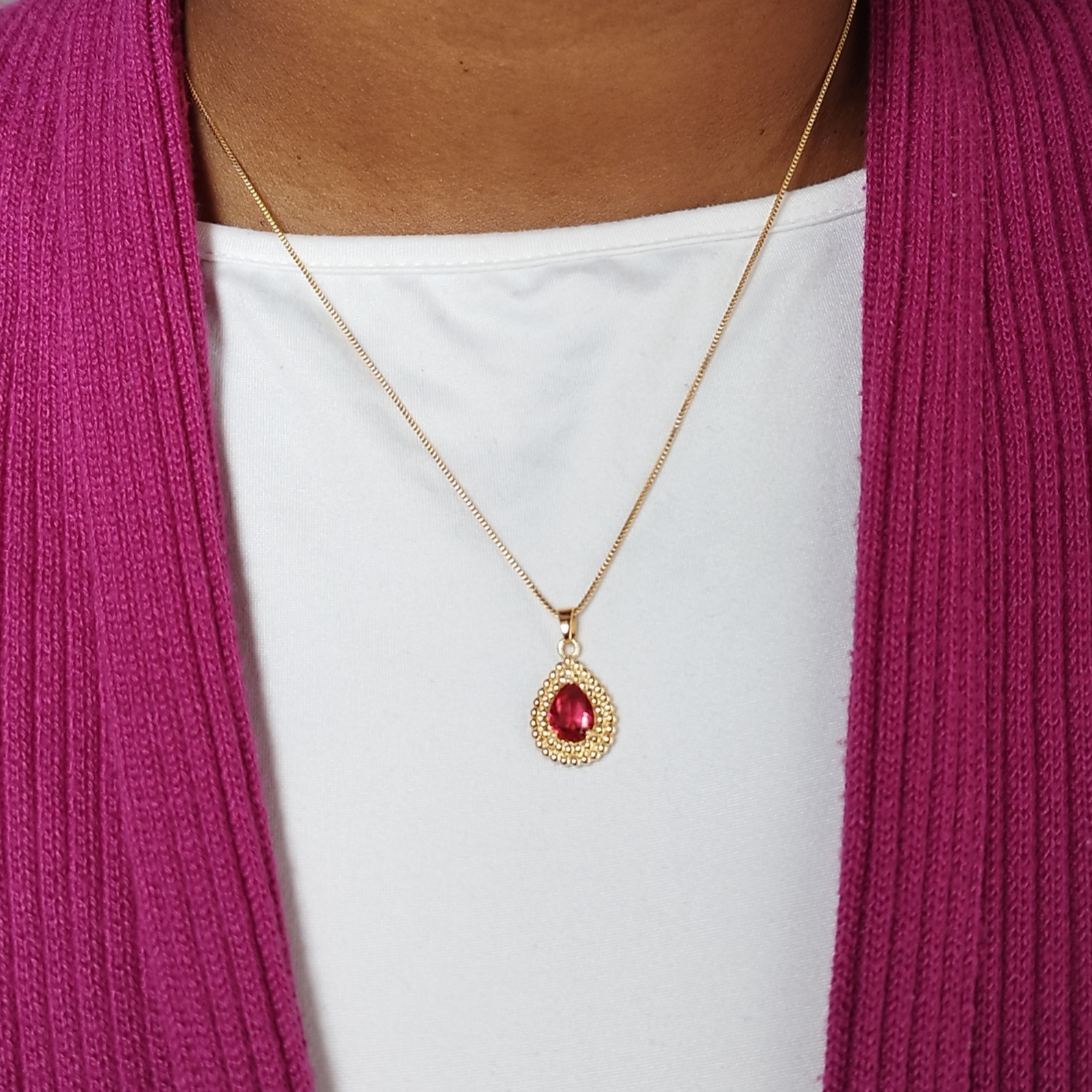 Cordão com pingente de zircônia vermelha: beleza, sofisticação e elegância em cada detalhe!