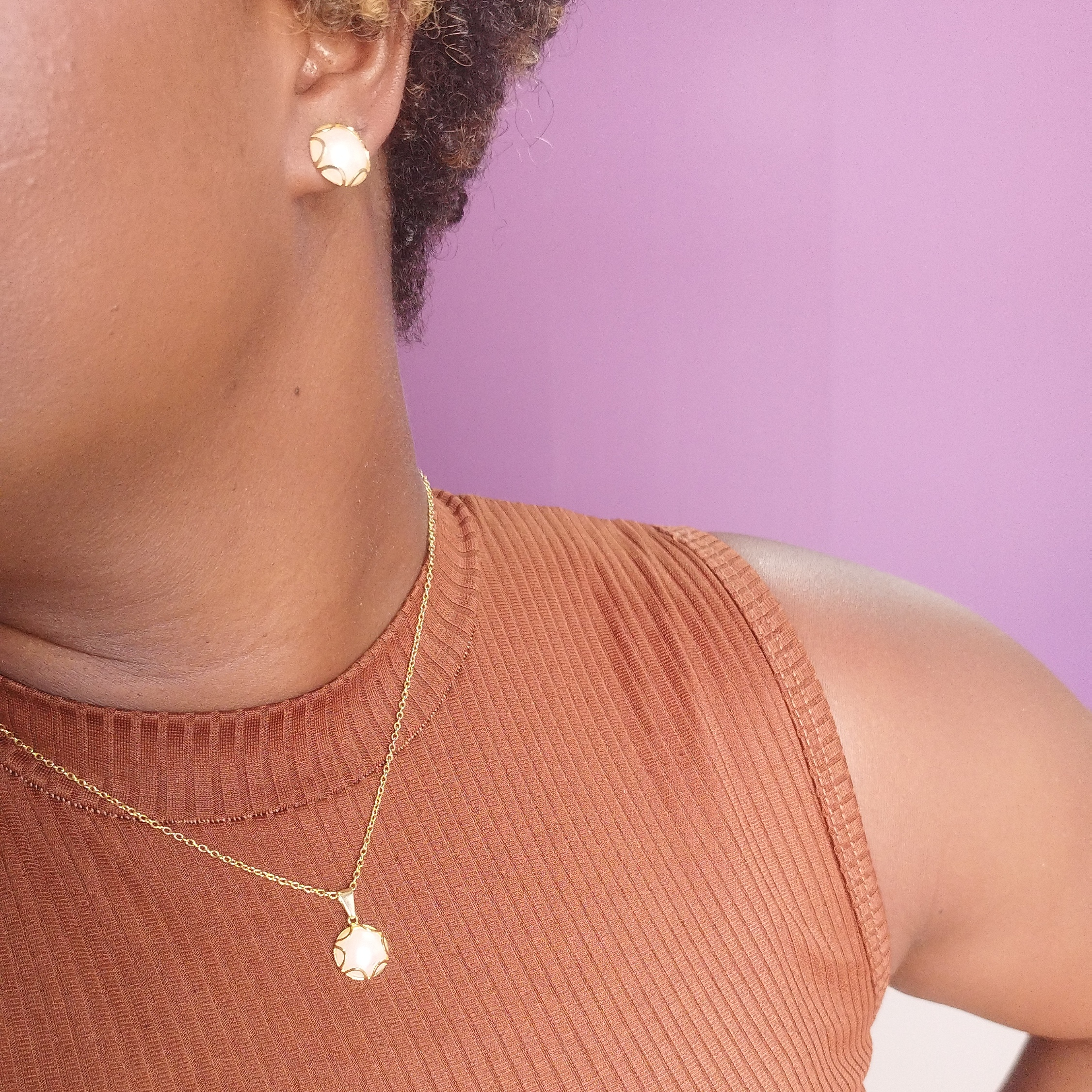 Conjunto cordão e brinco formato meia pérola: beleza, sofisticação e elegância em cada detalhe!